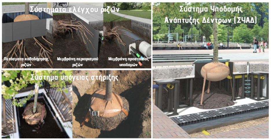 Εξοπλισμός ανάπτυξης του Αστικού πρασίνου, όπως το καινοτόμο Σύστημα Υποδομής Ανάπτυξης Δέντρων (ΣΥΑΔ), τα υπόγεια συστήματα ελέγχου ριζών και στήριξης δέντρων. Πρόκειται για υποδομές που προστατεύουν τις ρίζες και εξασφαλίζουν υγιή και μακροχρόνια ανάπτυξη δέντρων σε δύσκολες αστικές συνθήκες. Με αυτόν τον τρόπο ενισχύεται το αστικό πράσινο με βιώσιμο πρόσημο.