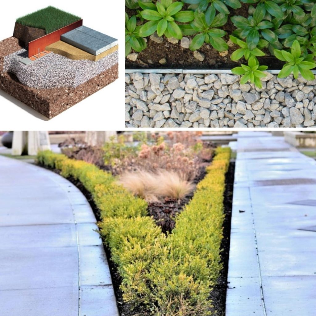 Κήποι βροχής και συστήματα διαχείρισης ομβρίων υδάτων: Ειδικά σχεδιασμένες λύσεις που στοχεύουν στη δημιουργία και την ενίσχυση εστιών πρασίνου μέσα στις πόλεις με τη συγκράτηση και το φιλτράρισμα των ομβρίων υδάτων, βελτιώνοντας το μικροκλίμα και την τοπική βιοποικιλότητα.